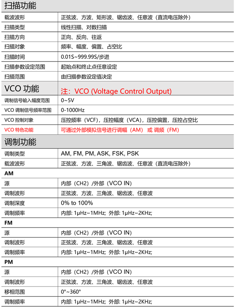 ◆ VCO功能:支持VCO電壓控制信號各參數輸出功能(例如壓控振蕩器)。