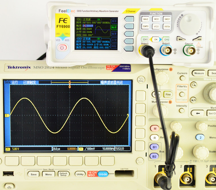 1、儀器輸出幅度為24Vpp,頻率為10KHz的正弦波信號