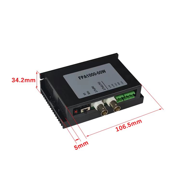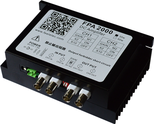 FPA1000-80W(200Vpp) (固定20倍放大)最高輸出幅度200Vpp(正負100V),最大輸出電流1A,最大輸出功率可達80W。